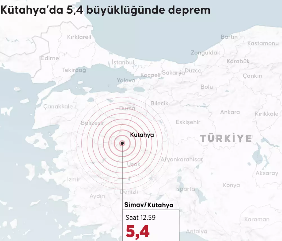 Bugün Kütahya'nın Simav ilçesinde meydana gelen 5,4 büyüklüğündeki deprem, İstanbul, Balıkesir ve çevre illerden de hissedildi.