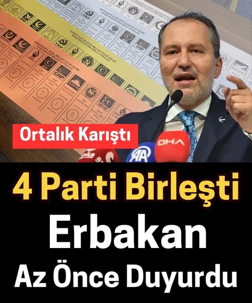 Yeniden Refah Partisi Genel Başkanı Fatih Erbakan, NOW TV'de katıldığı canlı yayında dikkat çeken açıklamalarda bulundu. Erbakan, DEVA, Gelecek, Saadet ve Yeniden Refah Partisi'nin tek liste altında aday gösterebileceğini belirterek, "Daha güçlü bir sinerji oluşması bakımından İYİ Parti'nin burada yer almasına sıcak bakarız. İYİ Parti'nin son dönemde ciddi bir oy oranı var, toparlanan bir çizgisi var. Resmiyete bürünmesi seçime yakın dönemde olacak" dedi.Gelecek Partisi Genel Başkanı Ahmet Davutoğlu da geçtiğimiz günlerde Meclis'te gazetecilerle yaptığı sohbet sırasında Saadet Partisi, DEVA, Gelecek Partisi, Yeniden Refah Partisi, İYİ Parti ve Anahtar Parti'yi işaret ederek, "Ümit ederiz ki kısa sürede ittifak görüşmeleri tamamlanır. Türkiye'nin 3'üncü bir yola ihtiyacı var" ifadelerini kullanmıştı.